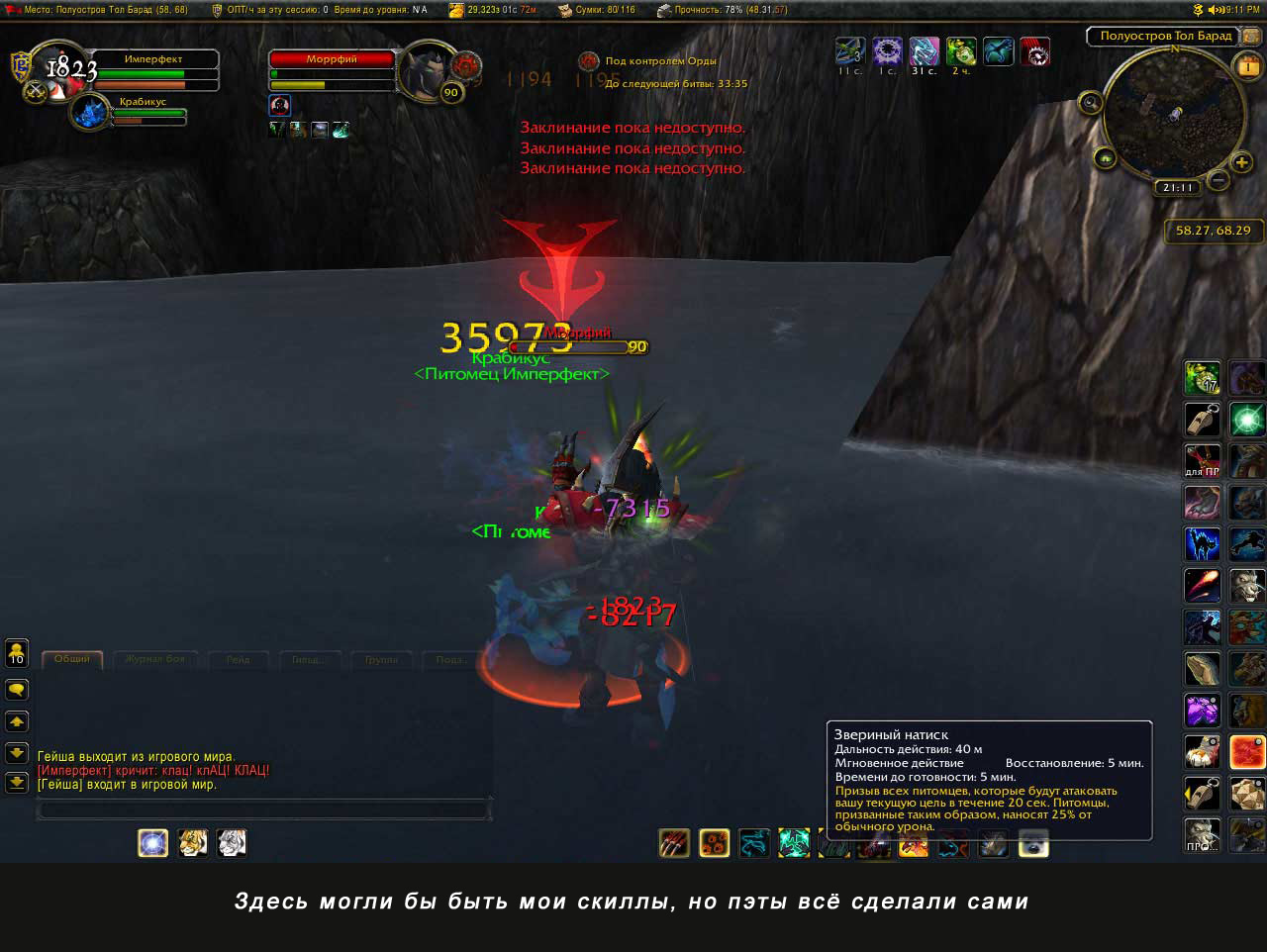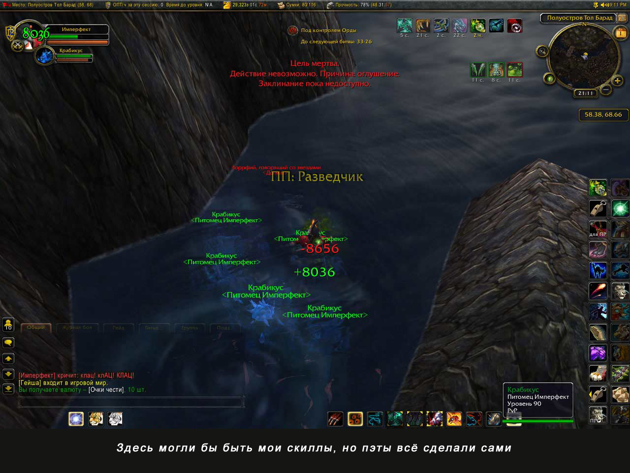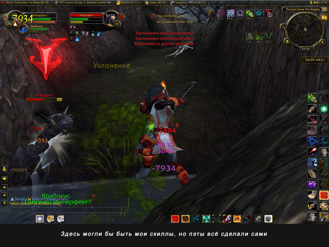 Имперфект писал(а):над заданием чисто по приколу работаю) раньше скринами как-то не увлекалась. оказывается, заскринить нужный момент - тот ещё фокус хД на пустынном ТБ встретился рога Моррфий, пофанились. скрины посмотрела - то не видно, кого убиваю, то на момент убийства пэты пропали. клац-клац![]()