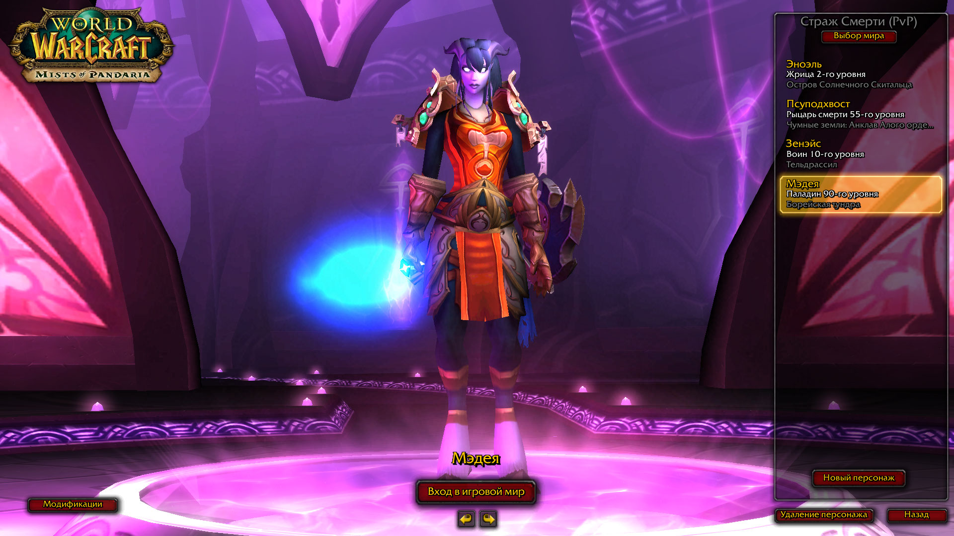 4. Скриншот экрана выбора персонажа