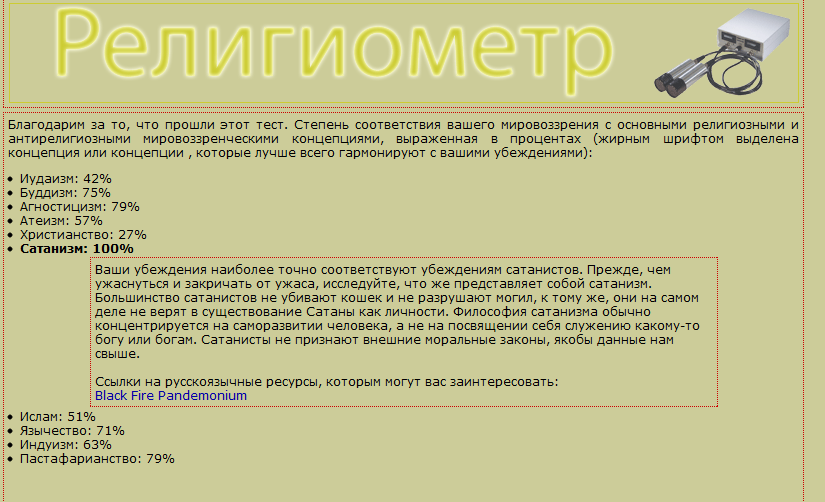 Прошел тест, какая религия мне больше подходит и был удивлен