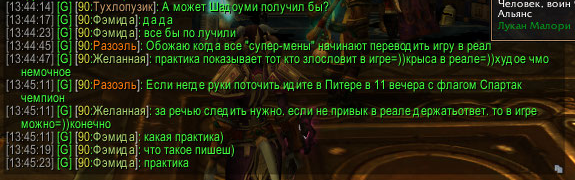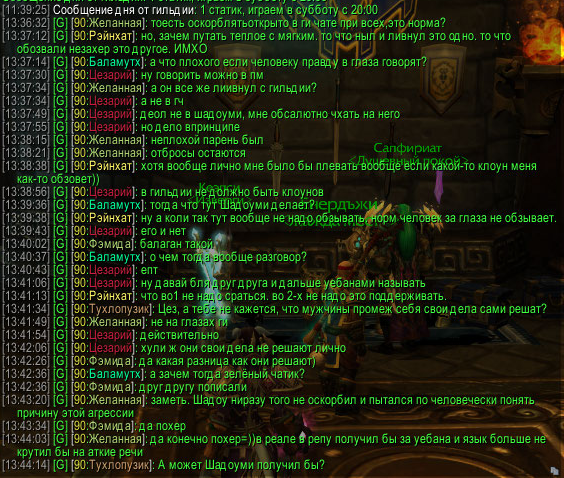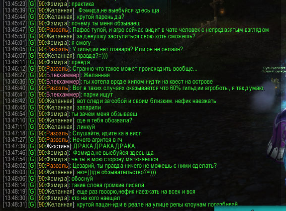 Кароче какойто уебан (шадоуми) начал ныть что для впвп он не одет и на гильдейские сбор не пойдет, а пойдет рбг на кап отыгрывать. на что я ему предложил все же сходить на впвп, т.к. (объяснил почему ему надо бы пойти). Он обиделся и замолчал (но не пошел). На следующий день его сержик добил и он ливнул, потом его приняли снова. Мне предложили взять его в прим (та самая "подстилка" (это цитата хомы) Желанная), я сказал что не буду его инвайтить, т.к. он уебан и он снова почемуто обиделся. Что было дальше в скринах =) Это было спустя день после событий с примейдом. Меня понизили до раба и я не мог ни печатать ни читать ги чат =)