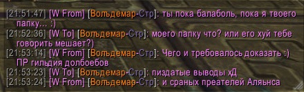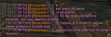 После того, как я вступил в рейд с немецкого серва, я пошёл убивать необходимого мне рарника на их серве. Там был немец, который его уже бил. Показав с хорошей стороны, я сагрил на него кучу мобов и немец подох, а я убил рарника. Реакция весьма интеллегентна:
